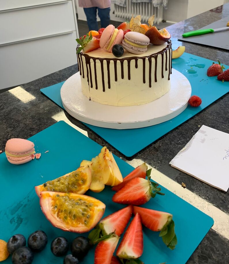 Am 02.03.24 hieß es Do it yourself - vor allem im Team. Das große Backen und wie man es in der Jugendarbeit nutzen kann, stand an diesem Tag im Fokus. Man konnte nicht nur seiner Kreativiät freien Lauf lassen, sondern hat auch im Austausch mit anderen und in Verbindung mit dem direkten Erproben, erfahren, wie man mit gemeinsamen Backen die Teamfähigkeit stärkt. Die selbstständige Konditorin Juliane von nanis_zuckerstube stand uns wieder mit Rat und Tat zur Seite. Jeder erprobte sich im Aufschneiden des Kuchens, dem Einstreichen mit Creme und dem Verzieren mit Schokoladendrip. Aber alle aus dem Team mussten zusammenhalten und -packen, um gemeinsam etwas herstellen zu können. Sei es beim Schneiden der Dekoration, dem gemeinsamen bestücken der Arbeitsfläche oder auch dem unverzichtbaren gemeinsamen Aufräumen. Jeder hat sein Wissen und sein Können ins Team eingebracht.